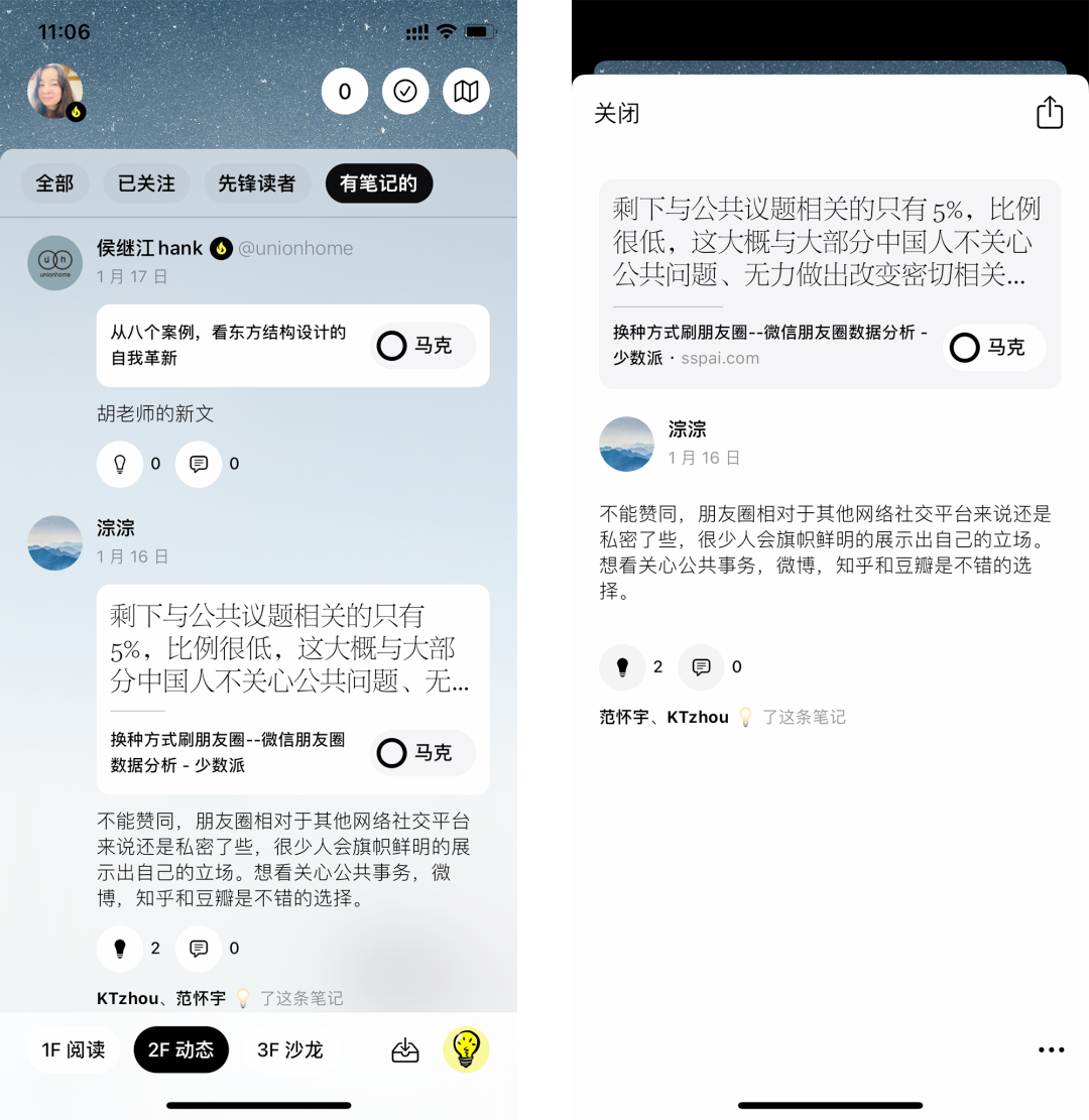 关注你的阅读同好:关注你喜欢的读者、和他们在文章里通过笔记的方式交流……
