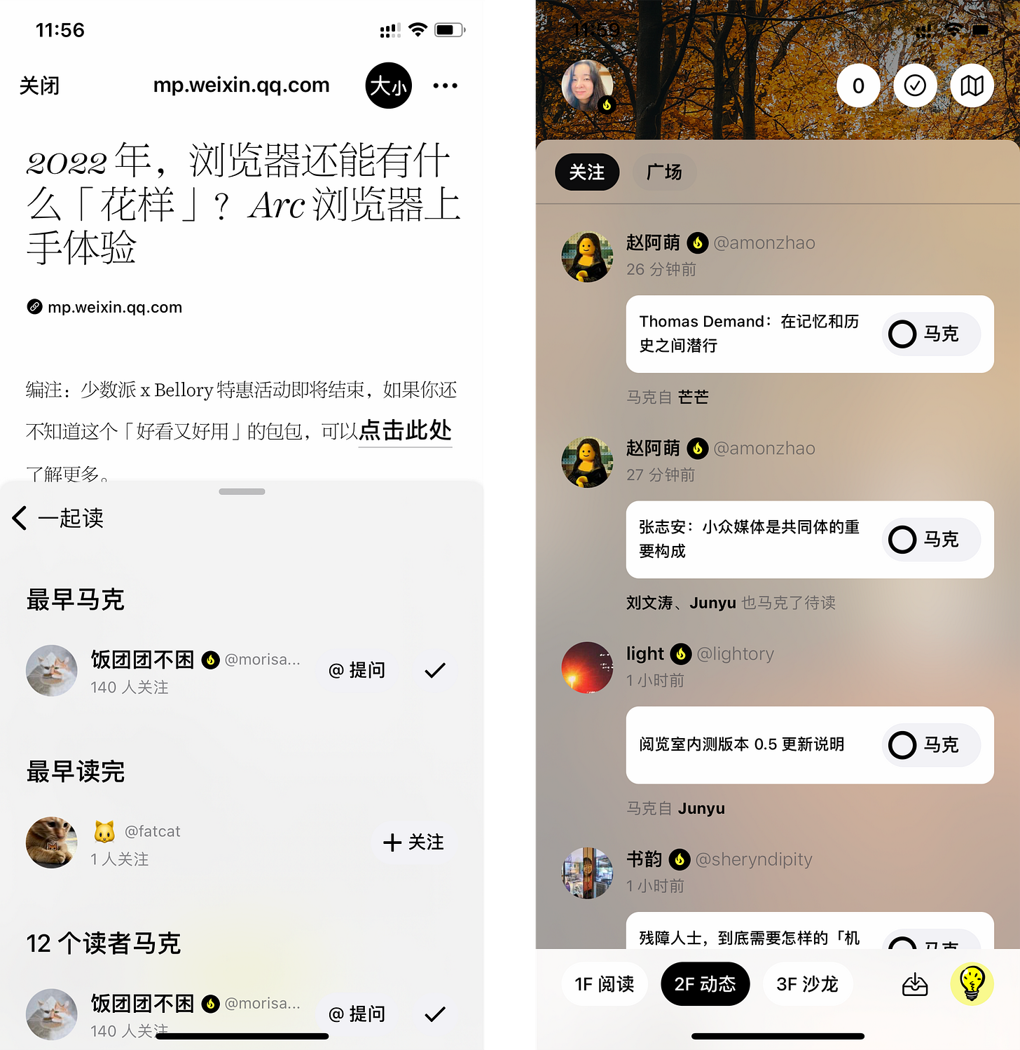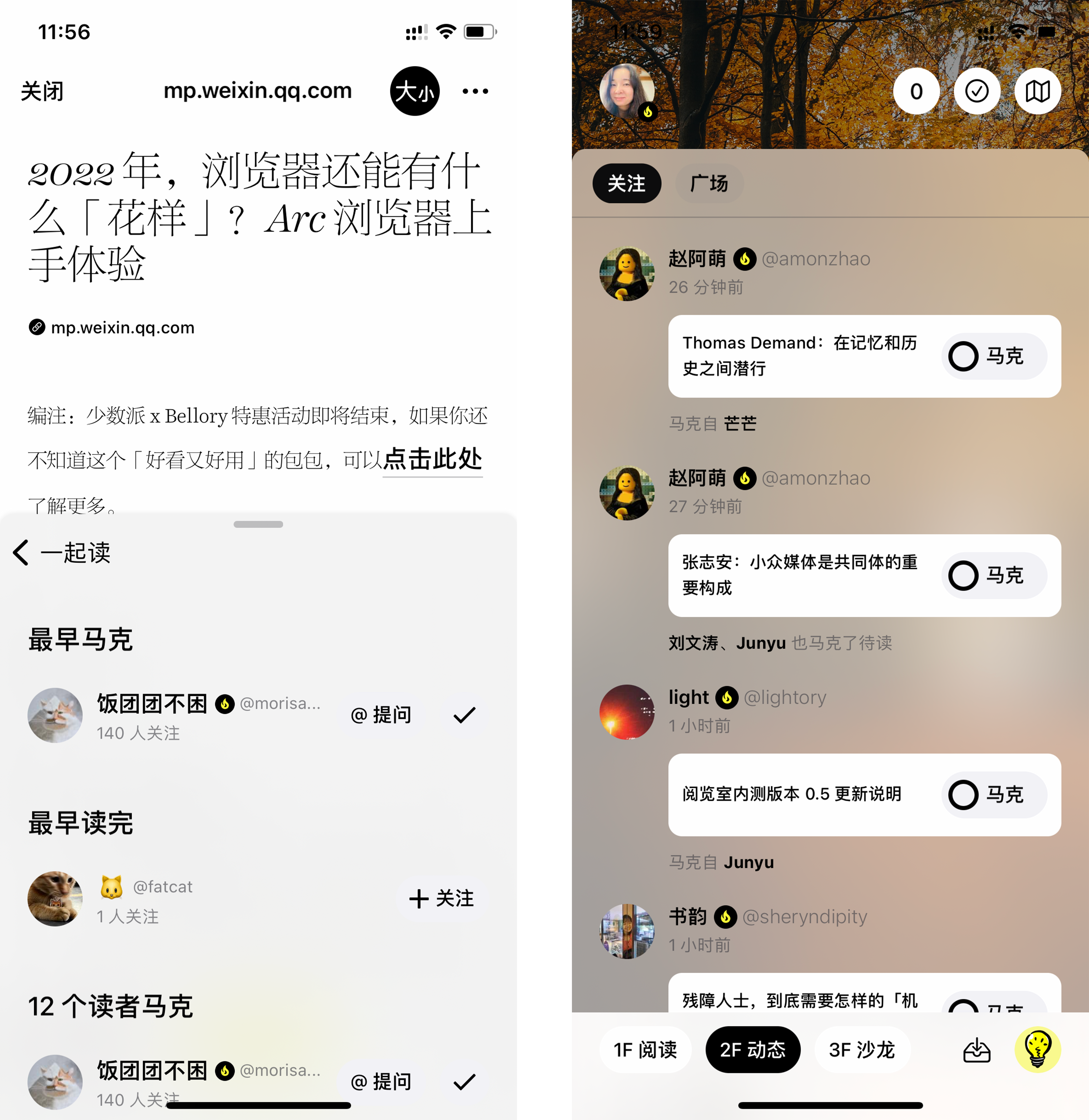 在 2F 动态中,我们现在会显示一个人是通过谁的马克发现了一篇文章。通过这种方式,读者也可以找到一些马克文章更勤快的读者。